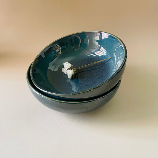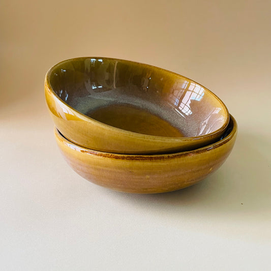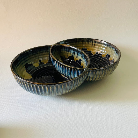 Yellow & Bleu Hand Painted Flat Bowl Set (Set of 3)