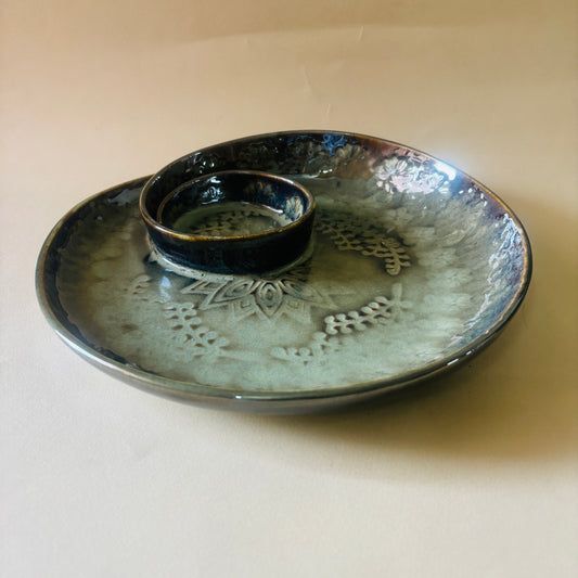 Sage Olive Bloom – Artisanal Platter with Dip Bowl