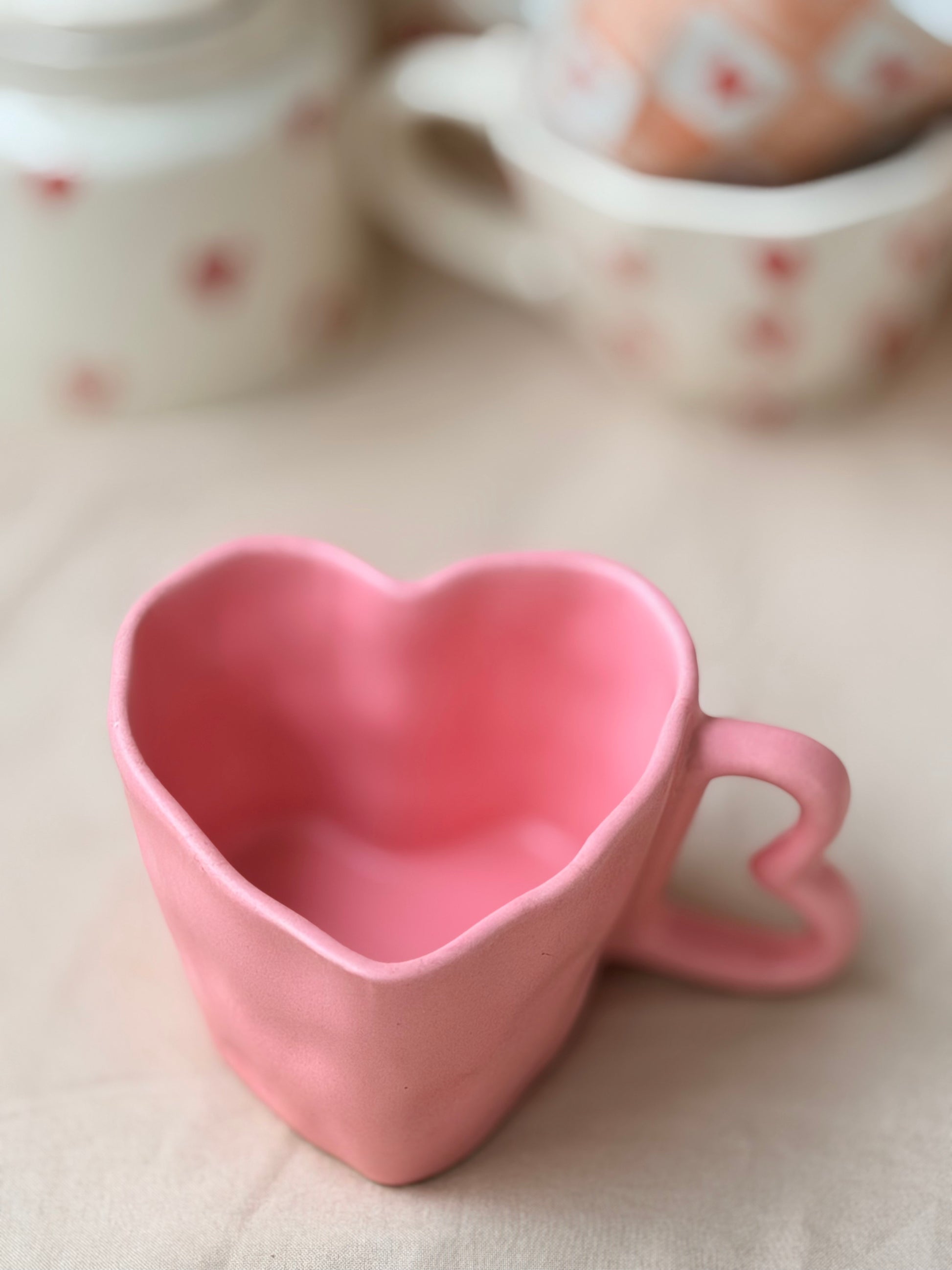The Heartstrings Mug is a handcrafted ceramic mug shaped like a soft heart, finished in a blush pink glaze with a playful heart-shaped handle. Designed to feel special without trying too hard, it’s perfect for everyday coffee, evening tea, or gifting someone you love (including yourself).