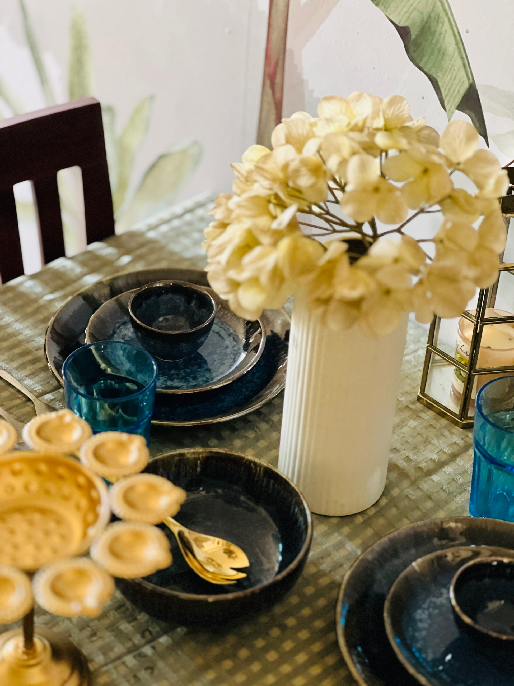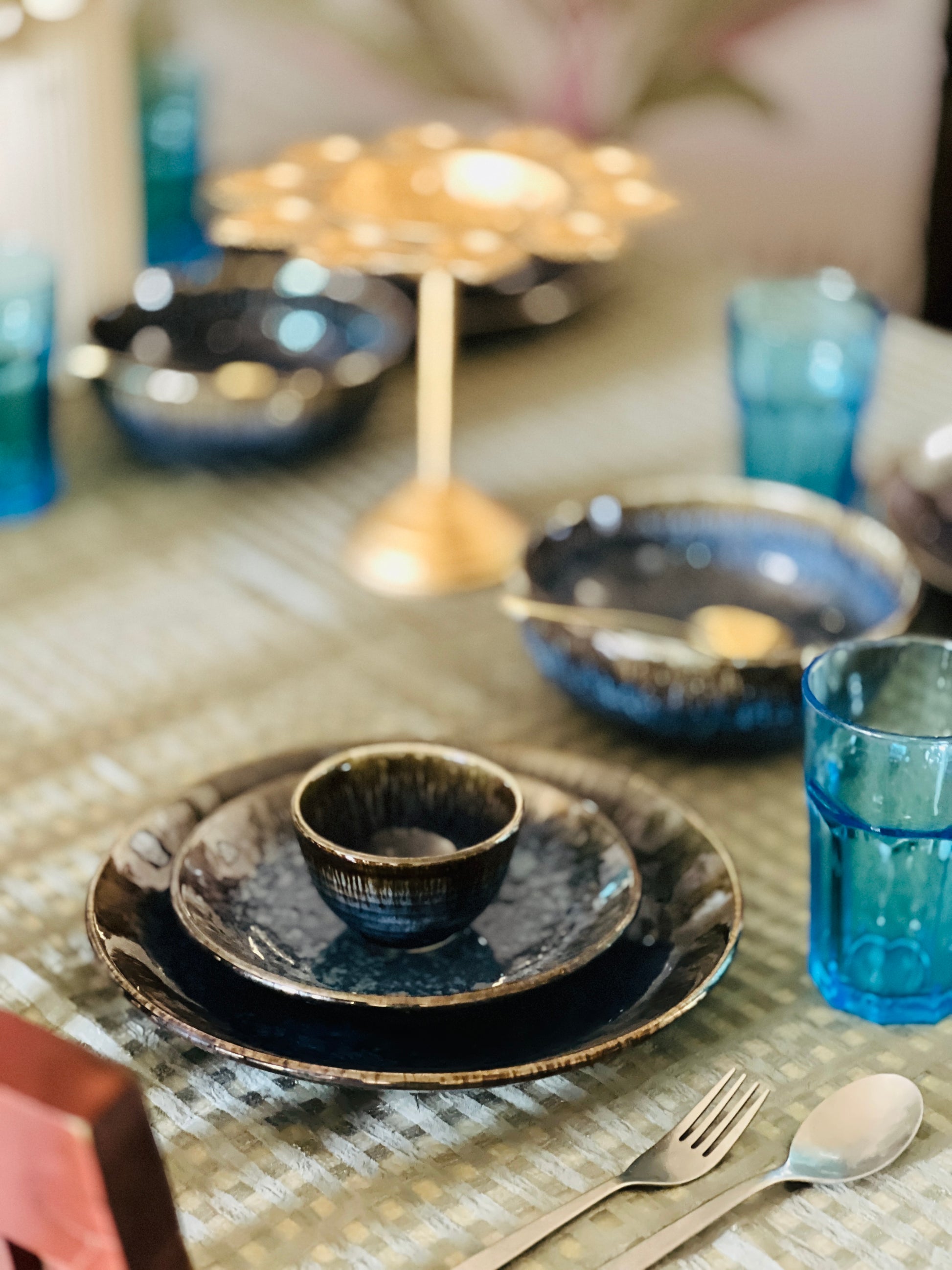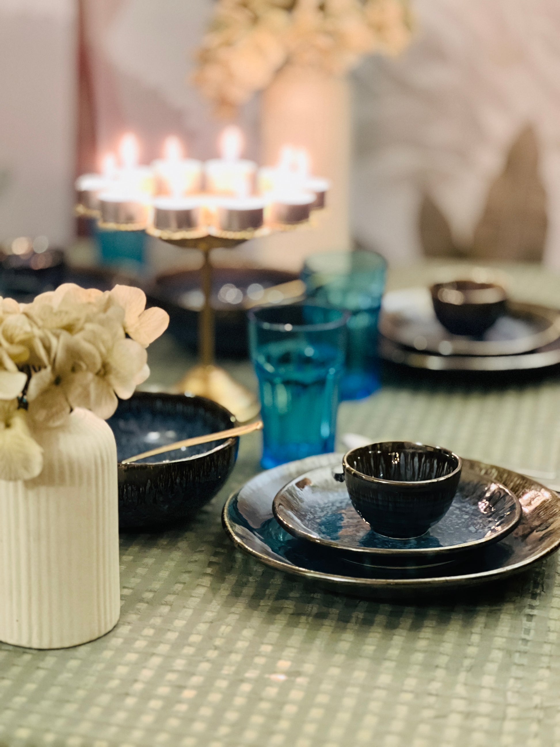 Bring home a timeless dining experience with our Midnight Aura Din Set — designed to impress with its deep oceanic glaze, rich brown rims, and artisanal charm. Perfect for family dinners, festive gatherings, or a stylish dinner date at home.