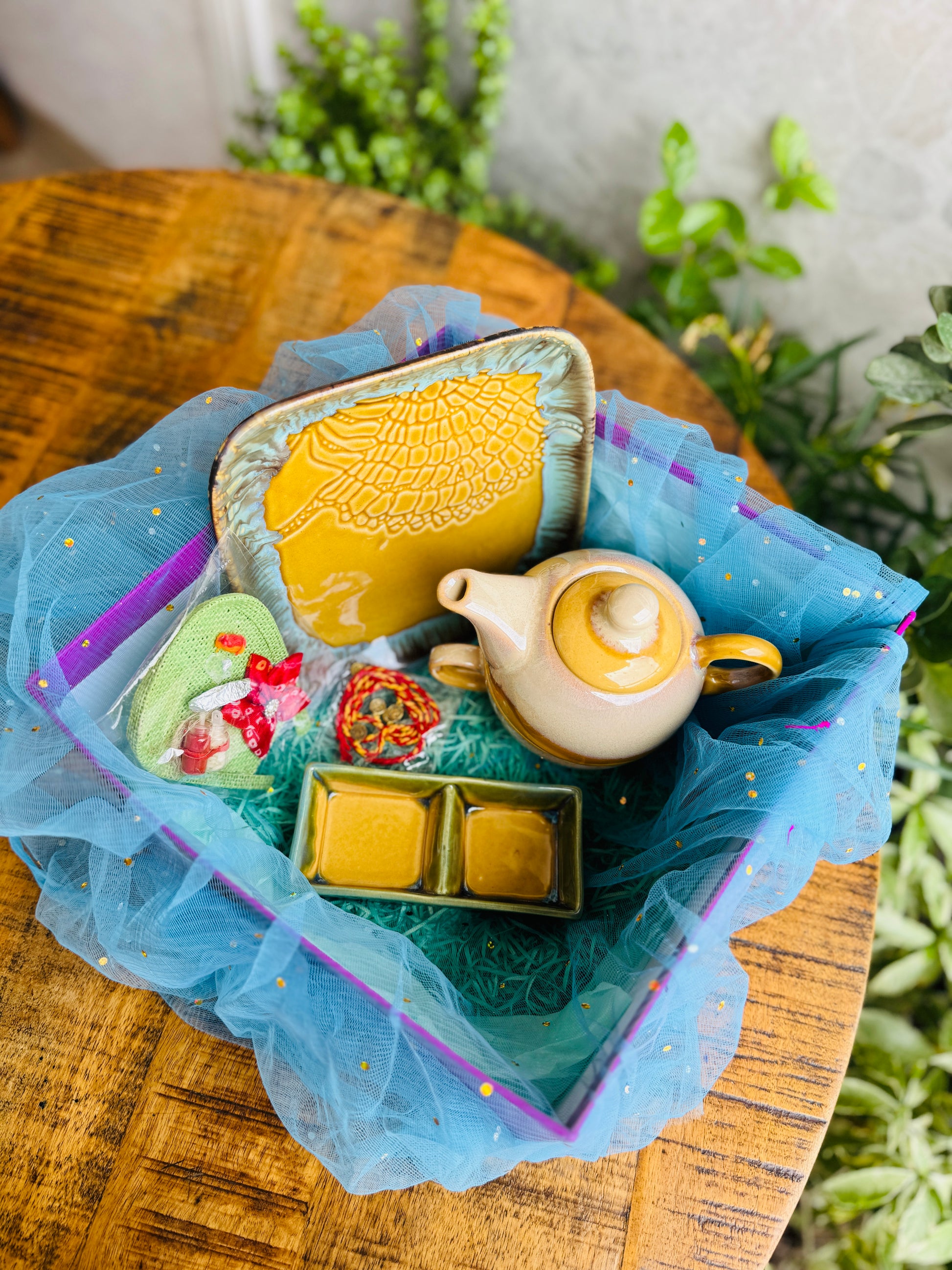 This Raksha Bandhan, celebrate warm moments and heartfelt conversations with our Chai & Cheer Edition Gift Hamper. Thoughtfully curated for the sibling who loves cozy tea times and beautifully handcrafted pieces, this set is a delightful blend of tradition and comfort. With earthy ceramics and joyful festive elements, it’s a gift that brings both utility and love — just like your bond.