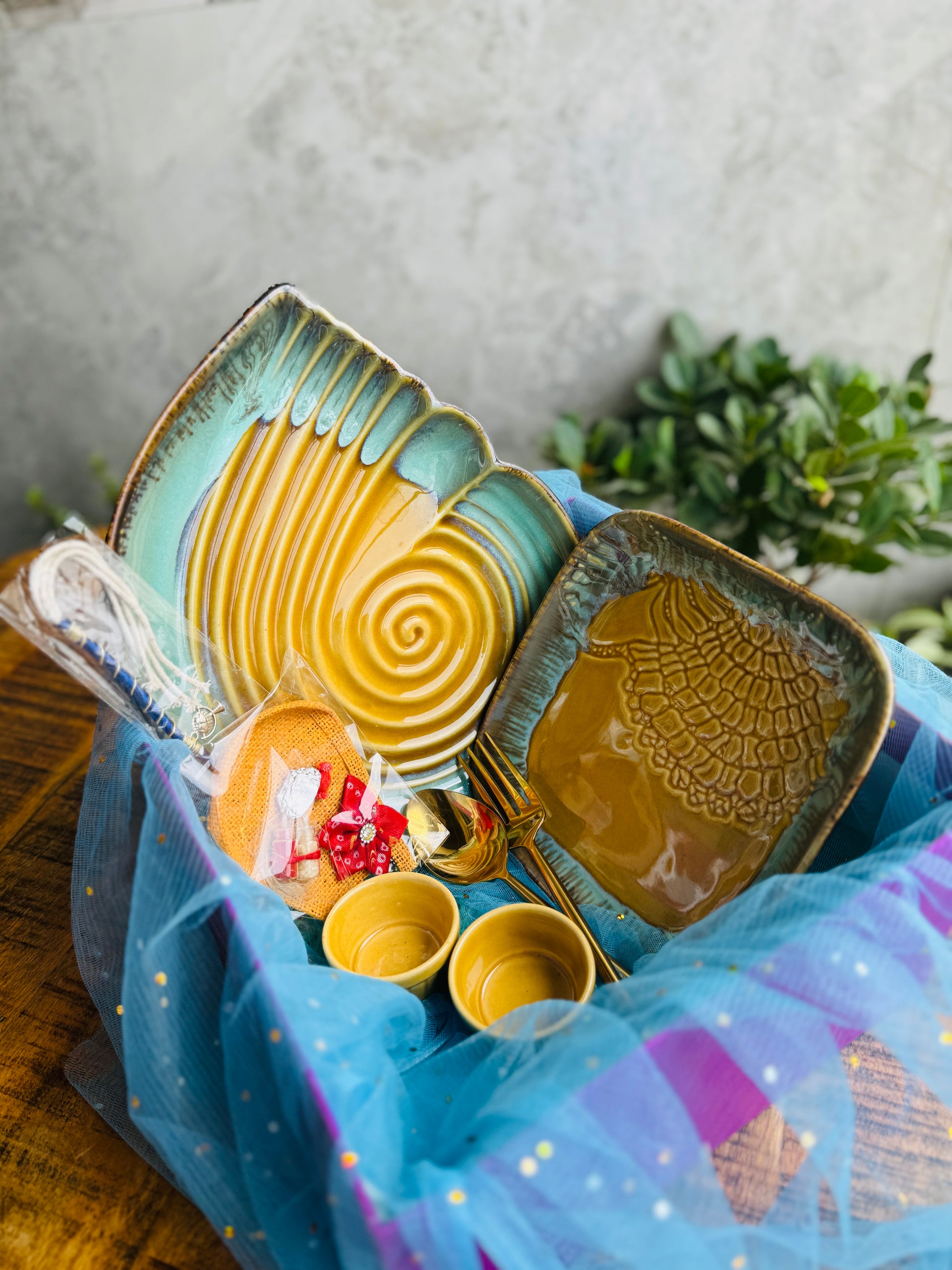 This Raksha Bandhan,gift your sibling a piece of artistic serenity with our Shell Edition Rakhi Gift Hamper. Inspired by the calming rhythm of the sea and the richness of tradition, this curated hamper blends aesthetic ceramic craftsmanship with festive sentiment. It’s a perfect mix of utility, decor, and emotion—thoughtfully put together to celebrate the enduring bond of Rakhi.
