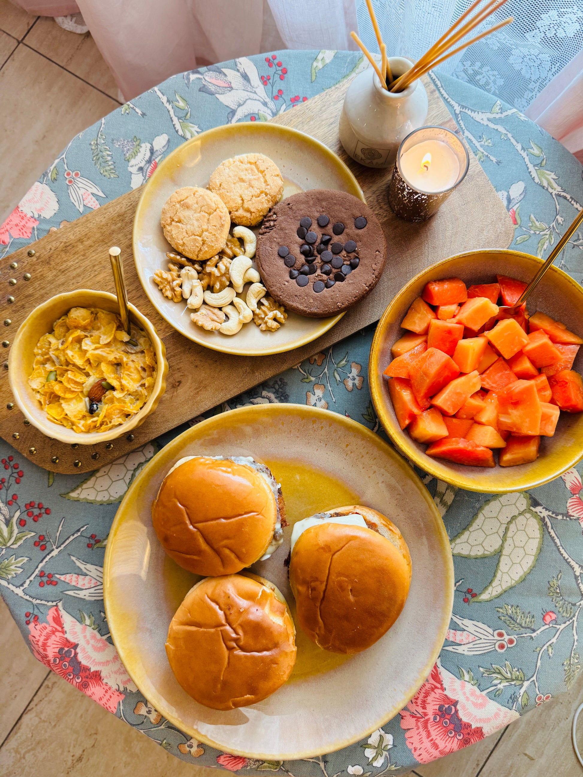 Layered Look: Stack the quarter plate on top of the dinner plate and place the sweet bowl slightly off-center for an inviting presentation.