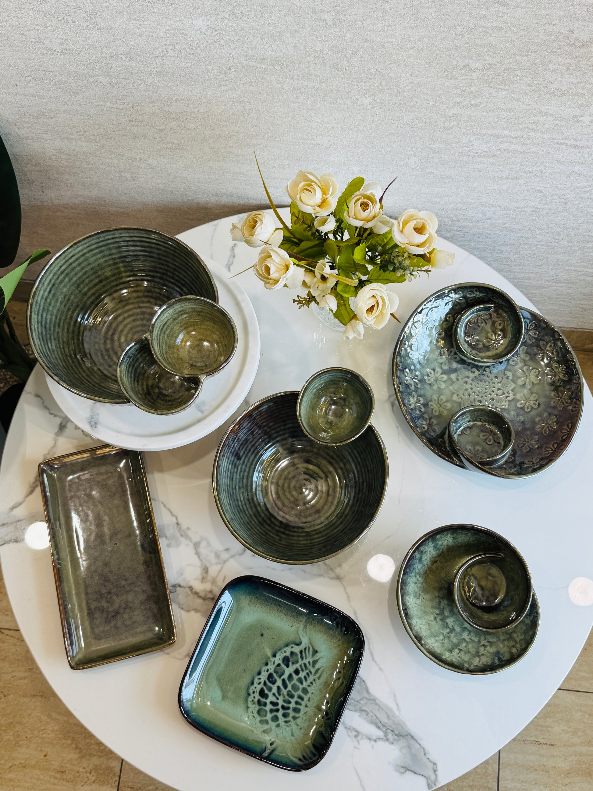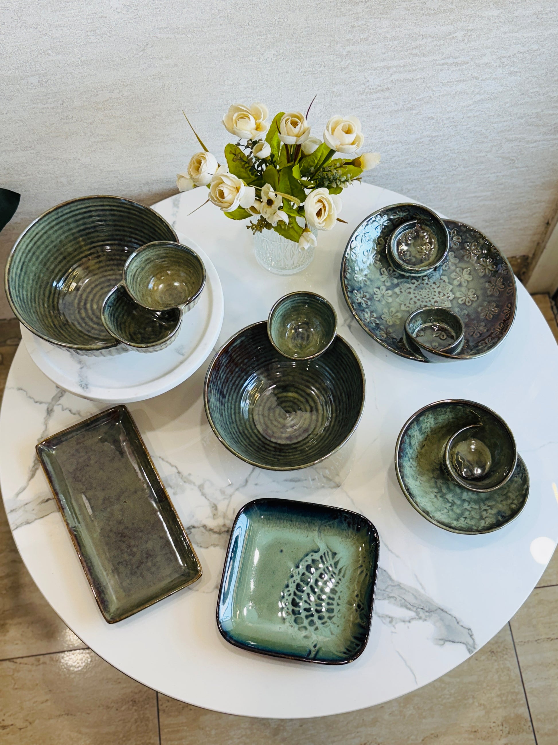 Theme it Naturally: Pair this set with fresh flowers, linen napkins, and a neutral-toned runner to bring out the earthy hues of the ceramics.