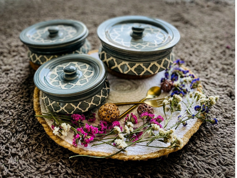 Welcome to our collection of exquisite Ceramics! Each piece in our range is a celebration of India’s rich heritage and artisanal craftsmanship. We take pride in offering unique, handcrafted items that bring warmth, beauty, and functionality to your dining experience.